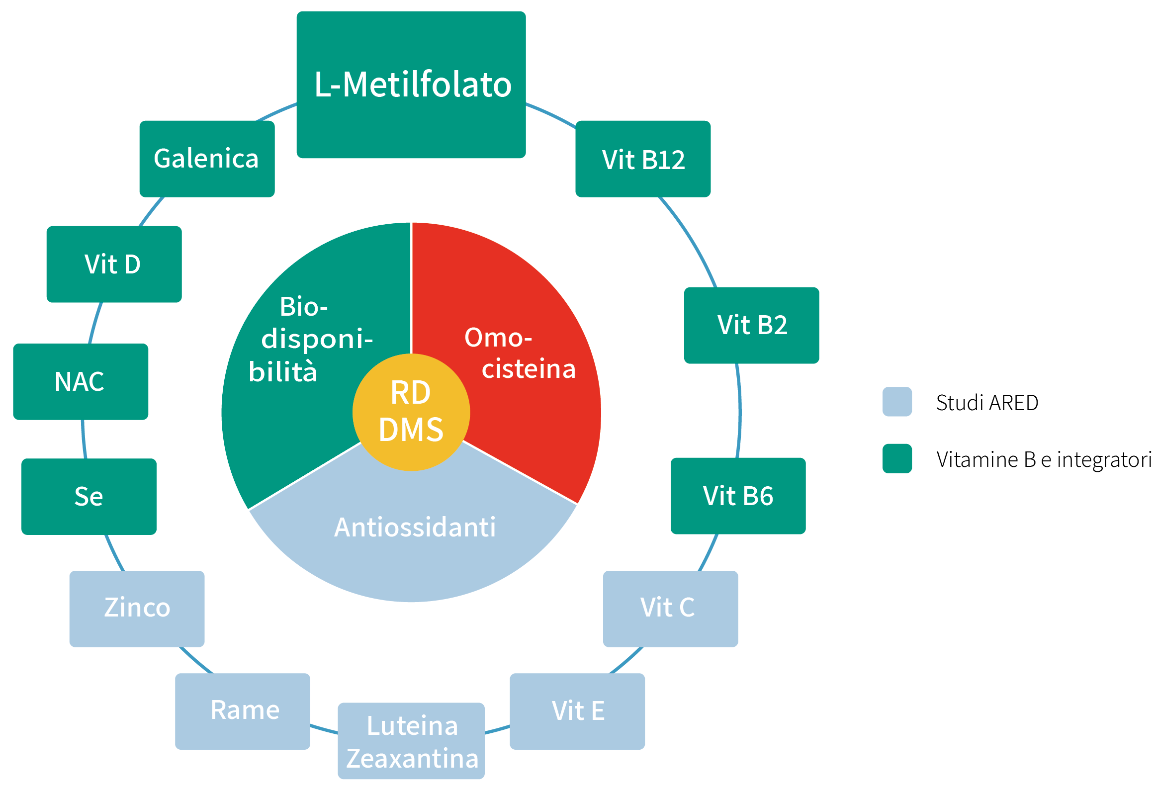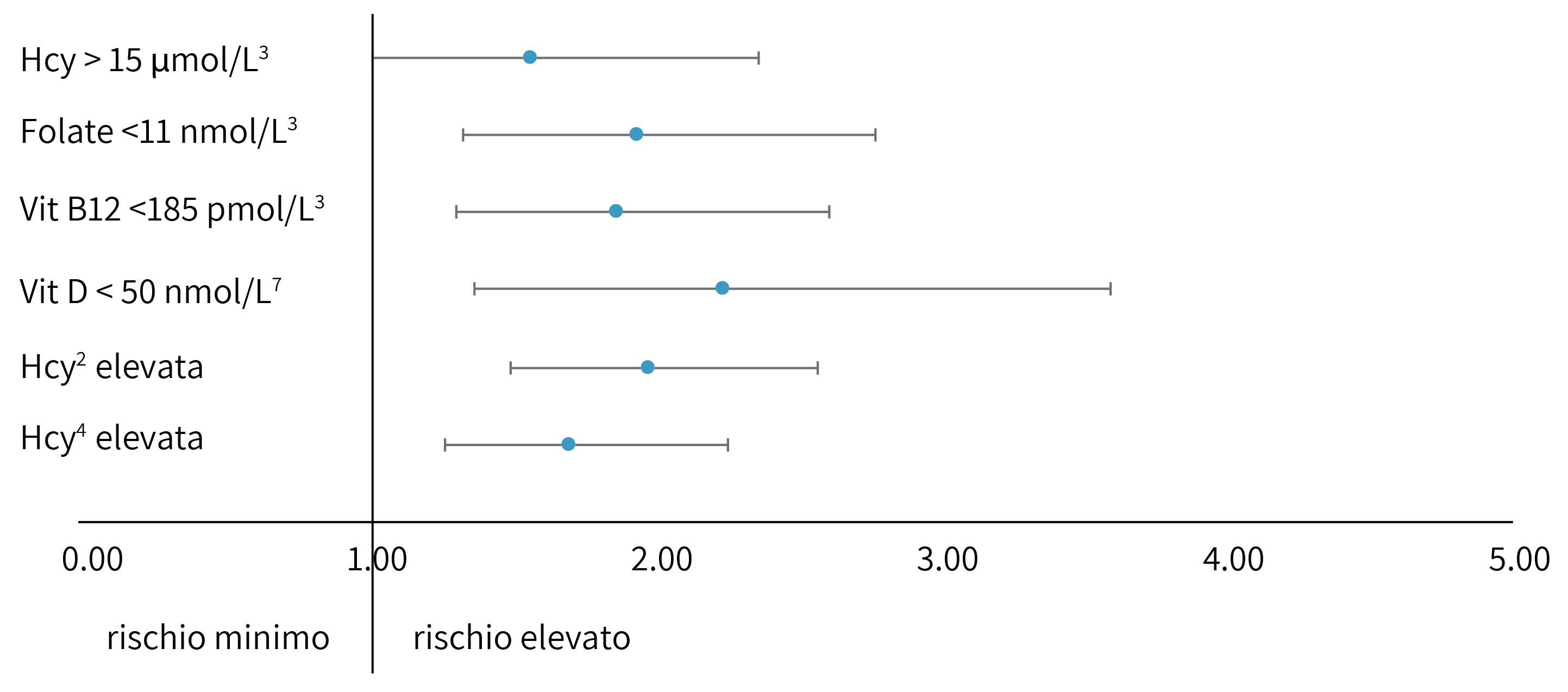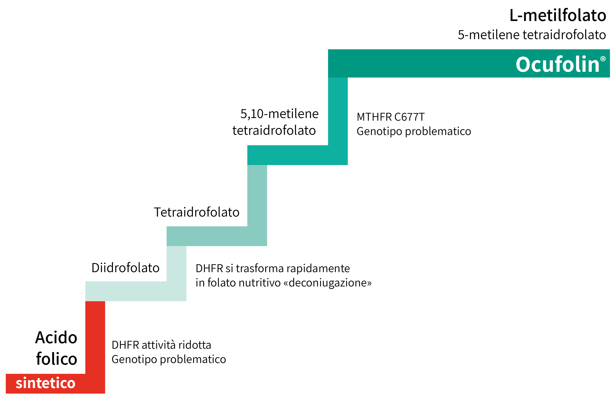 Fonti: Selhub et al., Biochemie, 126, (2016), 71 ; Stover et al., Curr Opin Biotech, 44, (2017), 146; Henderson et al., J Nutr, 148, (2018), 885